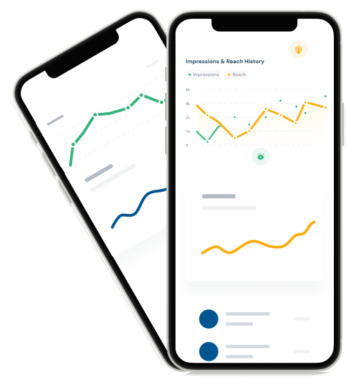 Graphs displaying your performance for metrics like follower evolution, average engagement rate per post and reach and impressions to give you the insights.